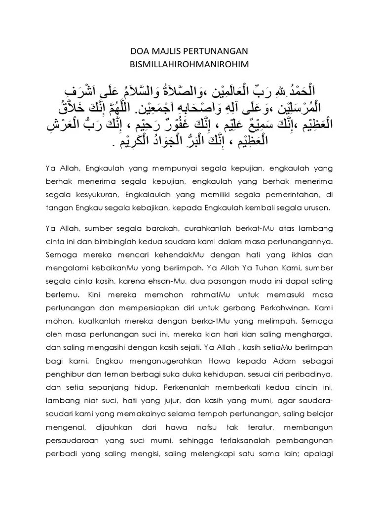 Ya allah kami panjatkan kesyukuran kepada mu . Tidak kiralah majlis kesyukuran, perhimpunan, majlis perpisahan, majlis kahwin, atau sebagainya. Ucapan doa selamat hari lahir jawi dan rumi wirid dan doa untuk doa. Dalam tulisan rumi · bismillahirahmanirahim. Ini adalah panduan bacaan doa selamat. Dianjurkan mengadakan majlis bacaan tahlil dan doa arwah sebagai menghadiahkan pahalanya kepada si mati. Wasallallahu 'ala saidina muhammadinin nabiyil ummiyi waala aalihi wasahbihi wasalam. Rasa kesyukuran kami terhadap nikmat .
